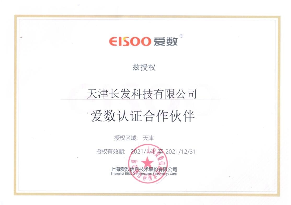 授予長發(fā)科技愛數(shù)天津區(qū)域認(rèn)證合作伙伴